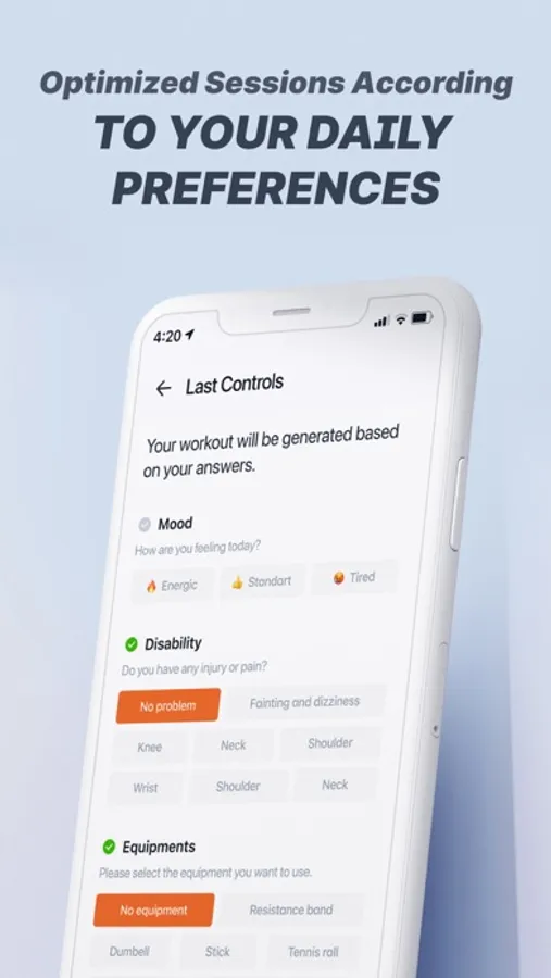 Are you feeling tired today? No problem! AI Trainer adjusts the training program according to how you feel.