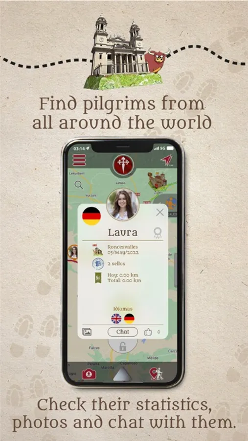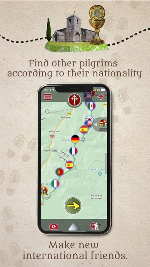 • It allows you to communicate with people who are on pilgrimage around the world, either in a virtual or real way; to contact them, it is enough to locate their “avatar” on the way and start a conversation.