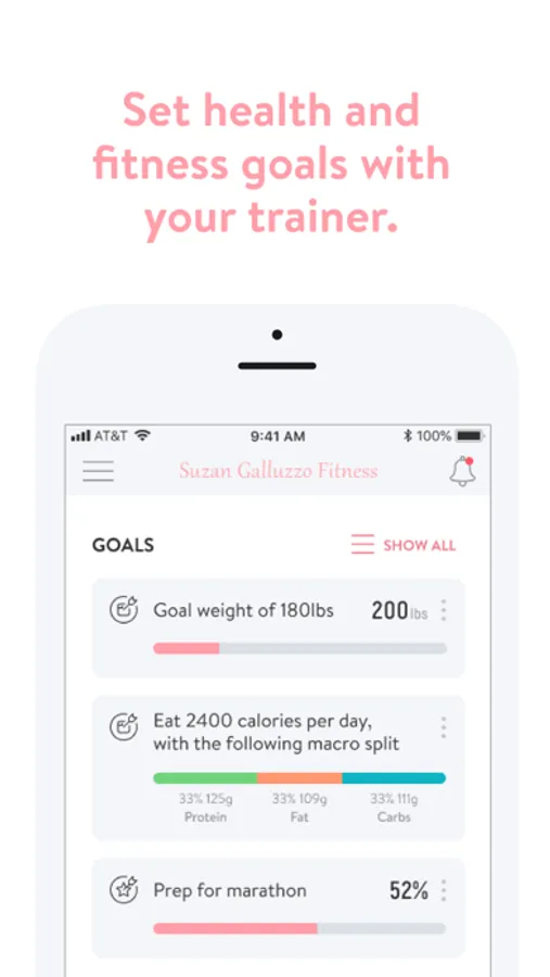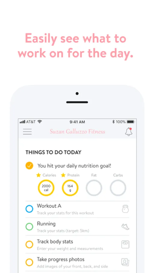 With the Suzan Galluzzo Fitness App, you can start tracking your workouts and meals, measuring results, and achieving your fitness goals, all with the help of your personal trainer.