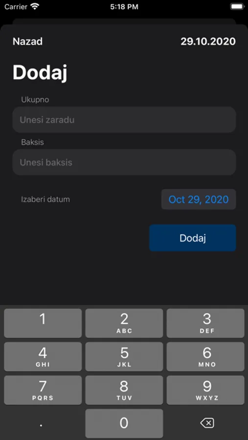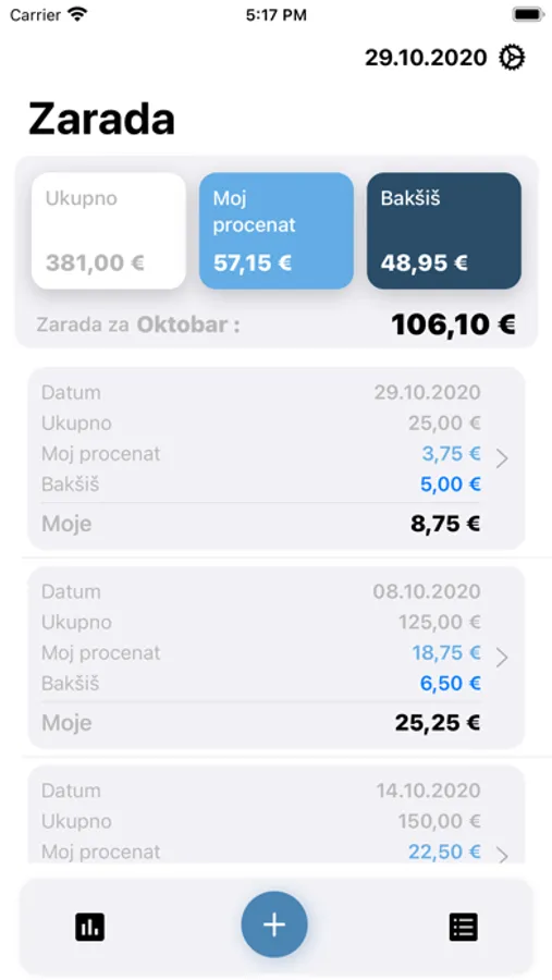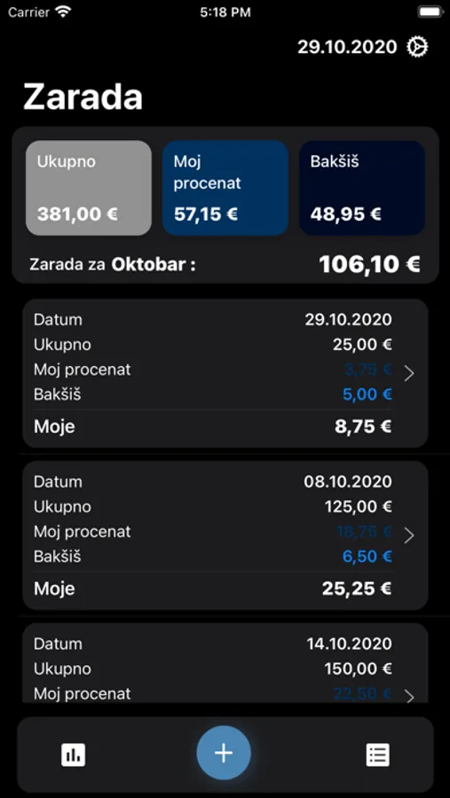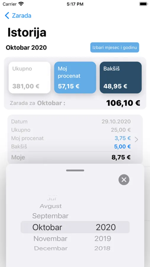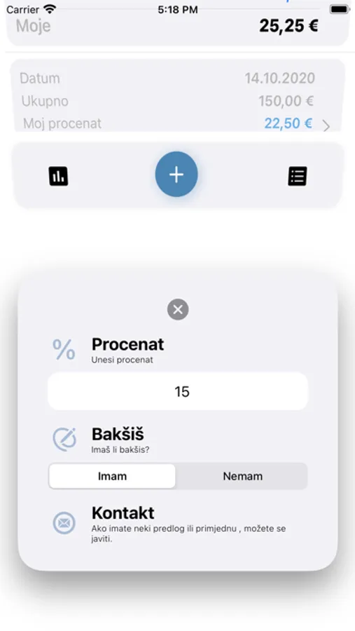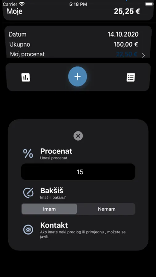 - Aplikacija se koristi tako što unesete prvo koliki procenat imate od prihoda, i vaša zarada će se automatski računati i na dnevnom i mjesecnom nivou.