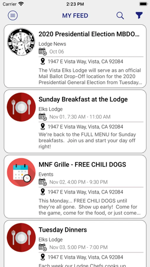 Stay Connected! This App is your portal for El Cajon Elks news, events, sign ups, contact info, updates, etc. Best of all, you filter your own content using preferences so the app will only notify you when there is something new that you have said you are interested in.