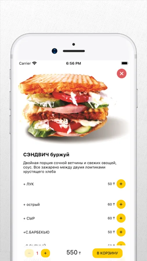 Приложения BURЖУЙ: это быстрый способ заказать вкусную еду до адреса или с собой. Вас ждут ваши любимые блюда: шаурма, пита, сэндвичи, блинчики, бургеры и многое другое.