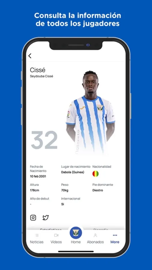 - Social media: follow all the social media of CD Leganés through the official app of CD Leganés. Don’t miss anything with our social media channels.