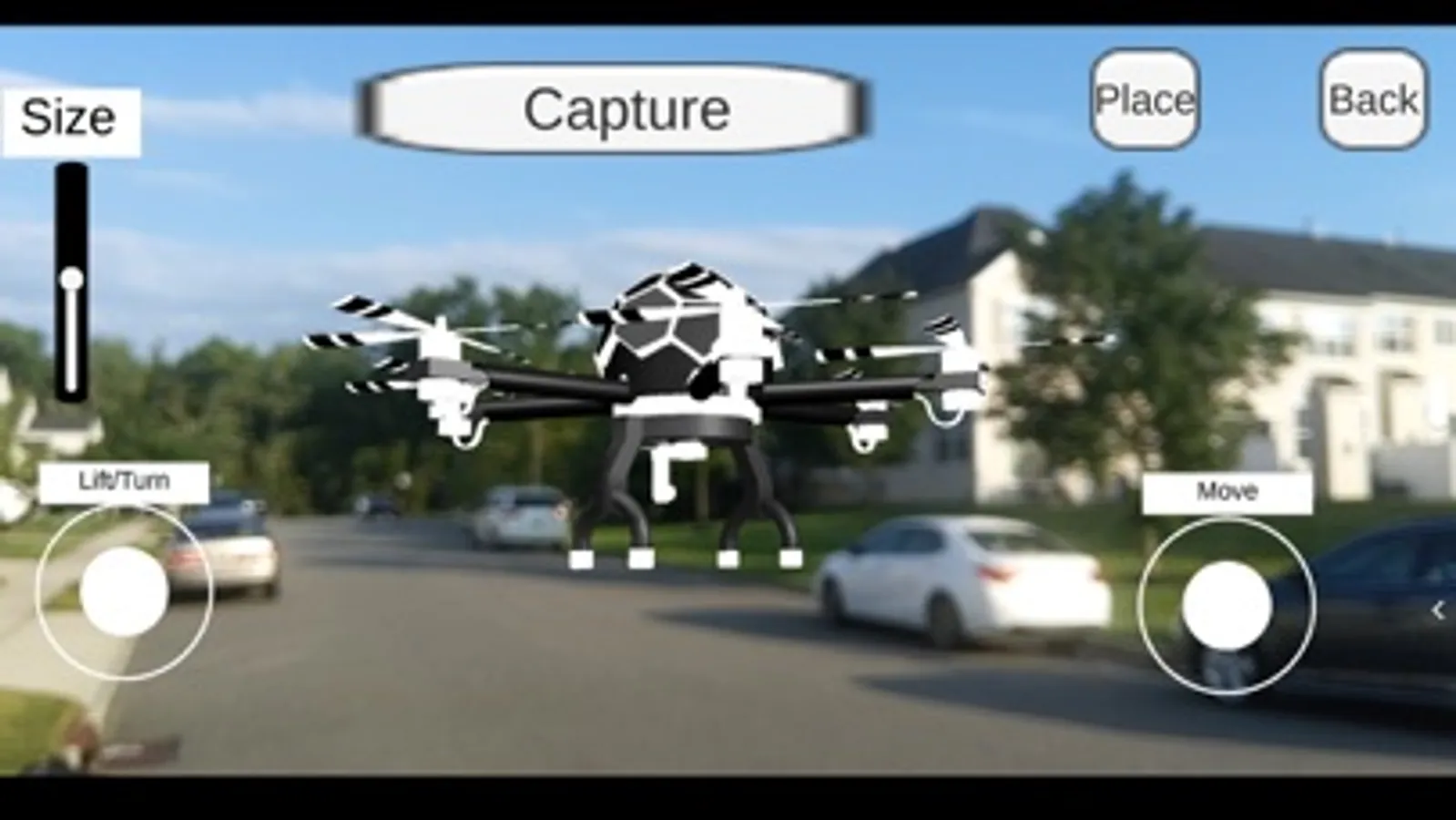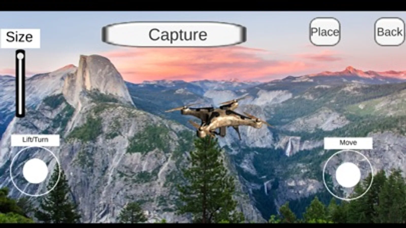 Use the joysticks and size slider to guide your drone and click the capture button to take a snapshot!
