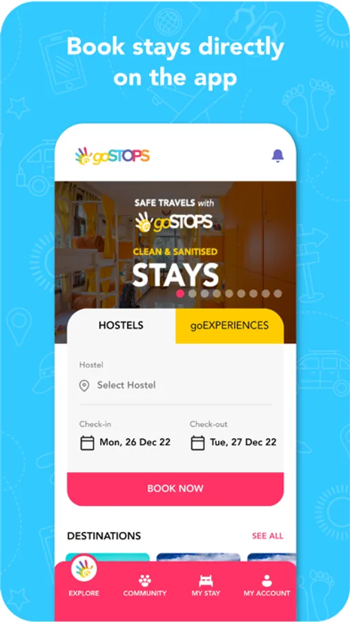 With this app, goSTOPS not only brings the convenience of booking your stay at the tip of your finger but also opens doors to its upcoming travellers community. The app’s social community space will be the place to plan fun experiences and mix with like-minded travellers. Connect with like-minded individuals, ask a question, order food during your stay at our hostel or quickly get support from our on-ground staff, it is all doable from our app.