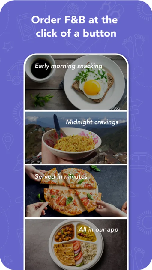 Use our app to book meals from the in-house café. Order from a selection of both vegetarian and non-vegetarian items. From burgers and pizzas to momos and parathas, each item in the menu is designed keeping your taste buds in mind. Our café is open 24x7 so whether it is a midnight snack you are craving, or an early morning tea that you want to sip while soaking in the view from your balcony, we are at your service.