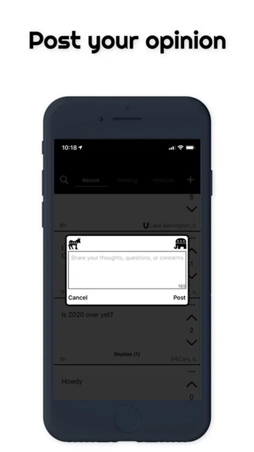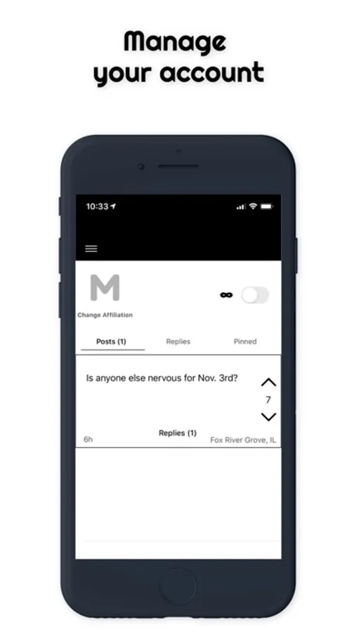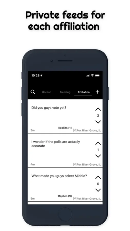 Own your bias by selecting an affiliation. Messages are tagged with your affiliation and location (optional) to create exciting discussions driven by passionate debate.