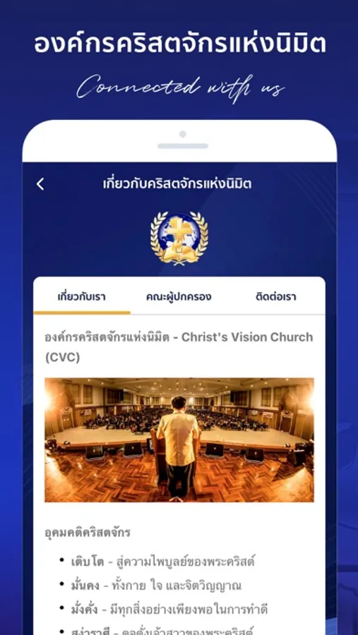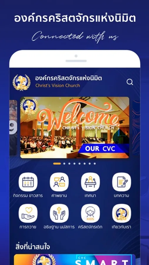 ยินดีต้อนรับสู่แอป iCVC แอปพลิเคชันองค์กรคริสตจักรแห่งนิมิต (Christ’s Vision Church)