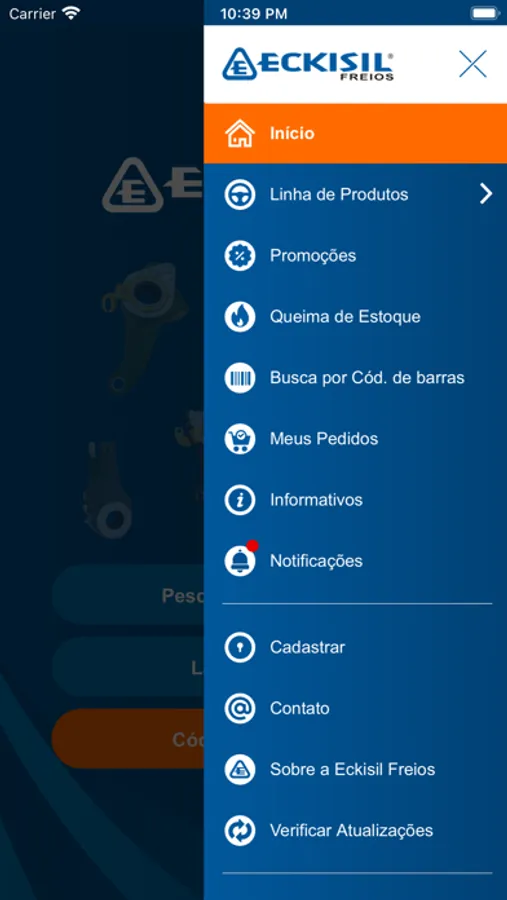 Com o aplicativo Catálogo Eckisil Freios você terá sempre junto todos os nossos produtos e novidades. Através dele poderá visualizar fotos e consultar informações detalhadas como características, aplicações e descrições sobre as peças que deseja comprar, além de poder entrar em contato conosco e tirar suas dúvidas.