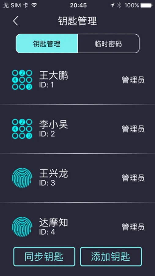 2、管理电子钥匙(指纹、密码、RFID卡)