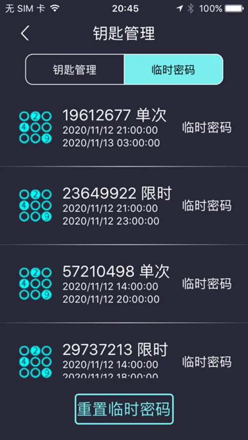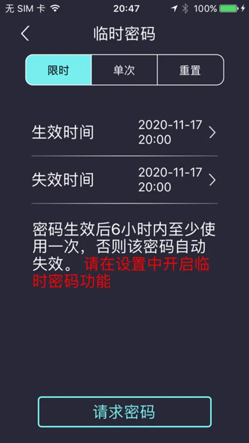 3、生成单次过限时临时密码