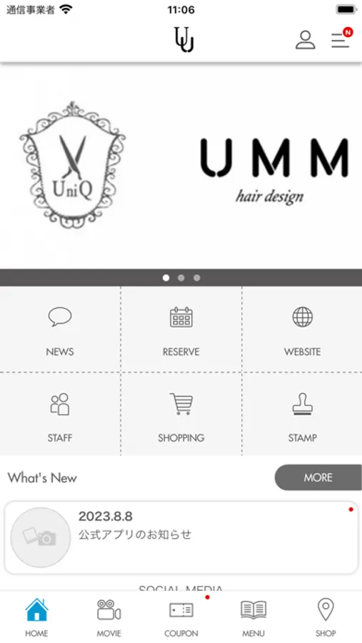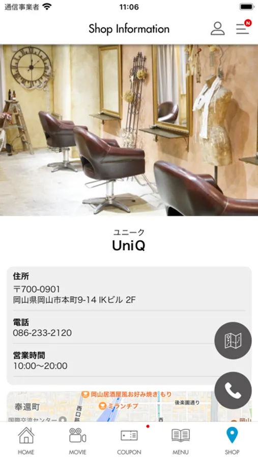アプリを通して、岡山市にあるヘアサロンの『UniQ/UMM』の