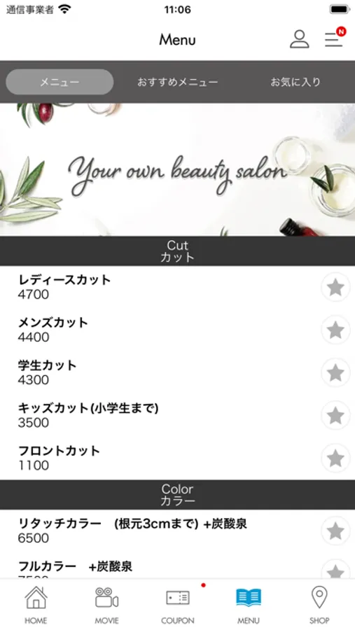 気になるサロンメニューや価格を、アプリから簡単にご確認いただけます。