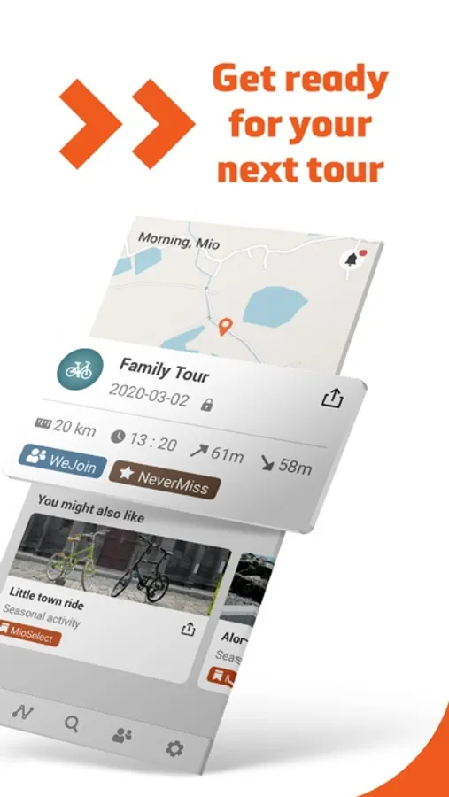You could plan a tour with NeverMiss stops through MioShare website with your computer or download a track from another website on the go. Use Komoot, RouteYou, or Strava Routes. Connect your intended account with MioShare. No matter which way, you can have routes downloaded to your Cyclo via WiFi wirelessly.