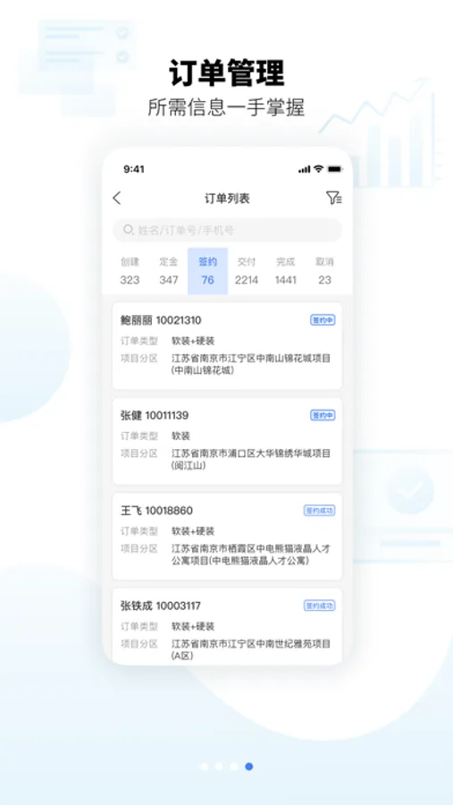 企业管理者可以随时随地获取组织最新信息,实时查看销售数据看板,订单额情况、客户成交情况、方案设计情况,根据数据洞察对销售人员、设计师、装修监理提供指导和安排,更有效率的管理企业内部的工作。