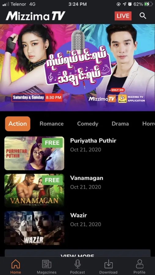 “Mizzima TV” is a one stop shop for all Myanmar digital entertainment which is designed to cater News, TV series, Movies, documentaries and more VOD content on demand.