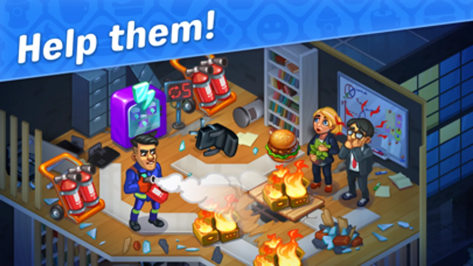 Time-management games are timeless classics, and Rescue Team is yet another testament to this. Enjoy excellent modern graphics, dynamic gameplay and pleasant music. The game is installed on a smartphone or tablet in one click and does not require a lot of free memory. The controls are intuitive - follow the on-screen prompts and guide the character to where his help is most needed. Become one with your character and prove to your teammates that you are the best rescuer in this vibrant and cheerful city!