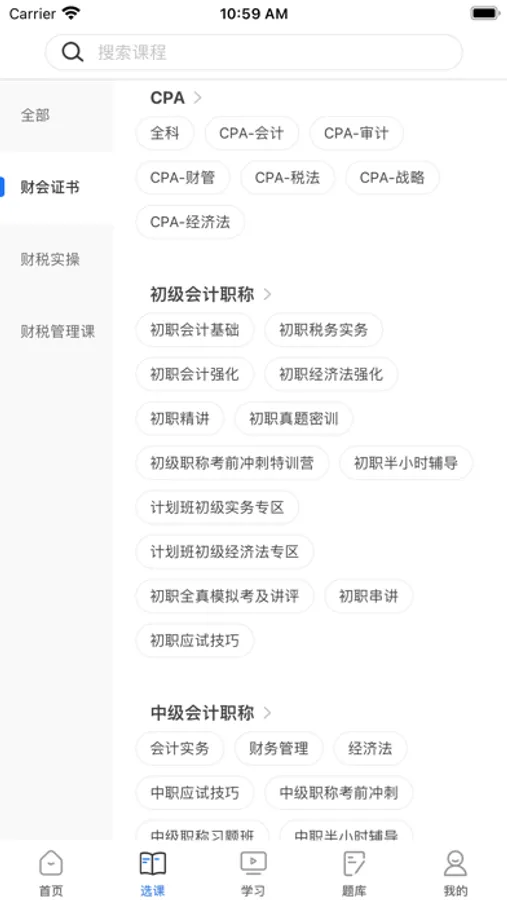 内容包含,初级,中级,高级cpa,cma等考证课程,以及财会精品实操课程培训!