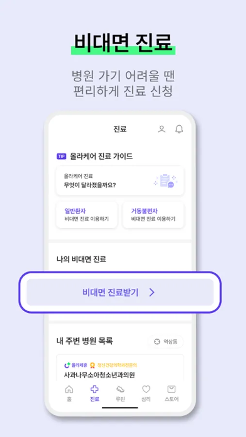 내가 있는 장소에서 바로 맞춤 진료 받아보세요!