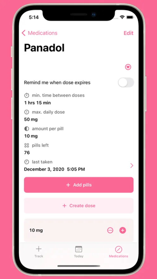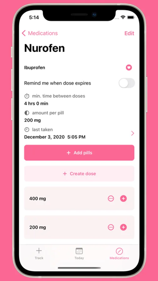 Log different dosages of the same medication. Log when you take a dose, rather than planning ahead and having to stay on-schedule. Perfect for medication needs that change often.