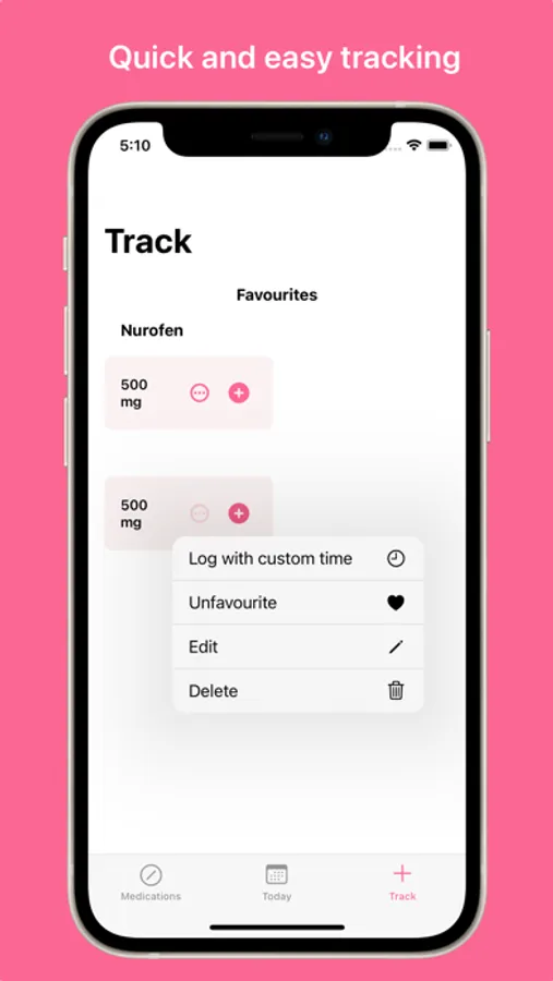 One-tap logging. Save doses as favourites. Siri shortcuts, quick actions, and Hello Meds for Apple Watch make logging quick and easy.