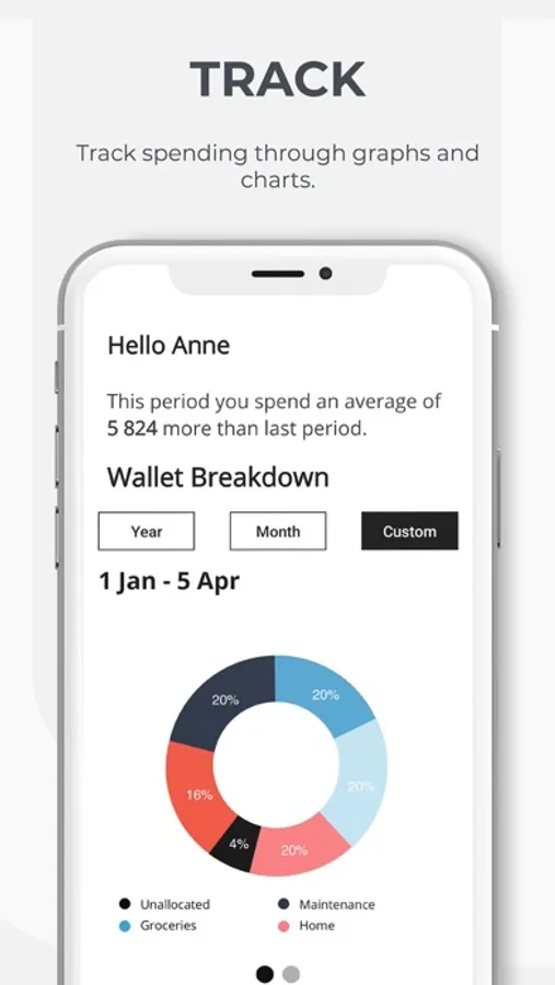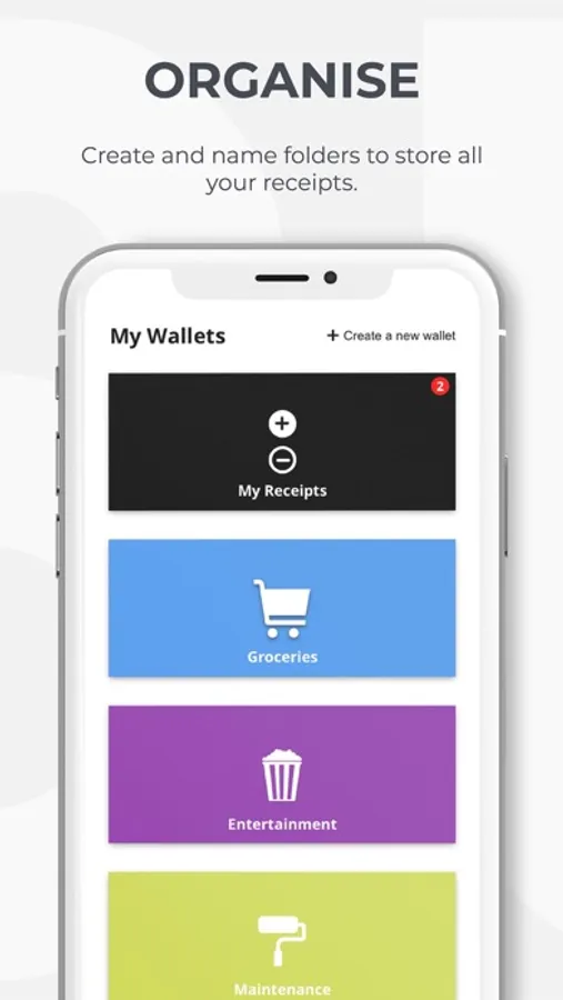We created a few wallets to get users started eg. TRAVEL, HOME, FOOD, users can customize these wallet to suits their own individual style by selecting the edit option in the top left corner of eg. Travel wallet. Assign a different name, color or wallet icon to the wallet, users can also create their own wallets by selecting the option in the top left corner of the app in the wallets menu.