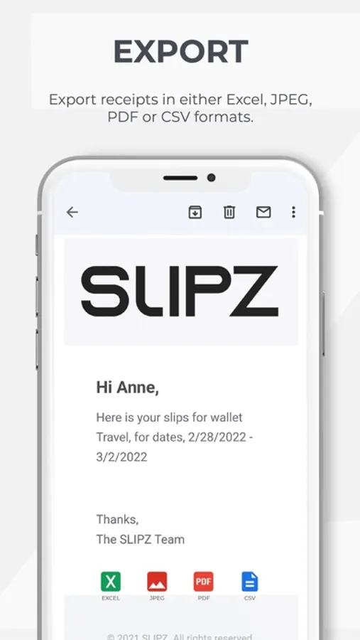 SLIPZ powered by AI technology scan and save receipts data turn your phone into a personal accounting finance tool, submit work related expenses for claims or tax purposes. SLIPZ is the best free tool that will help you manage all your expenses in one space. Its like an accountant that lives in your phone.