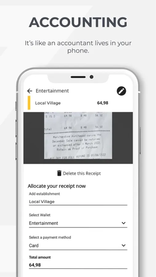SLIPZ digital receipts and personal accounting solutions app with built-in scanner automatically scans paper receipts, crop and extract data helping you organize your personal or business receipts and expenses in a more efficient way. Users can import PDF's from their email inbox directly to the app and allocate according to expense categories. Spending data can be viewed through charts and graphs and exported by email for personal or accounting purposes in Excel or CSV with images of receipts scanned, attached in JPEG format.