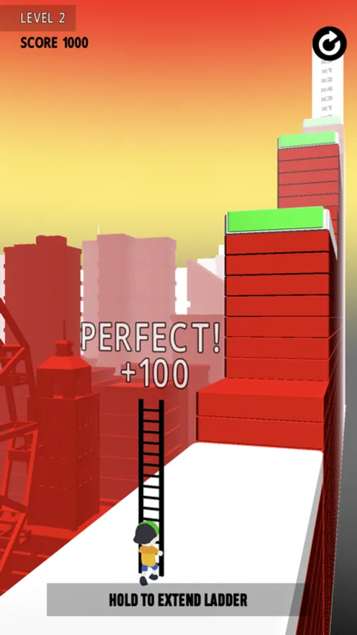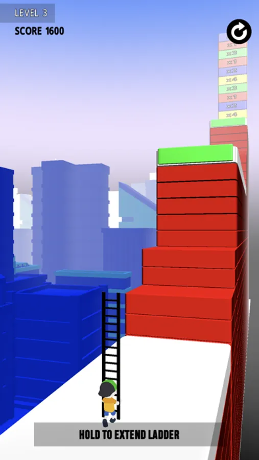 Extend the ladder to climb your way to the top. Don't hit the RED!