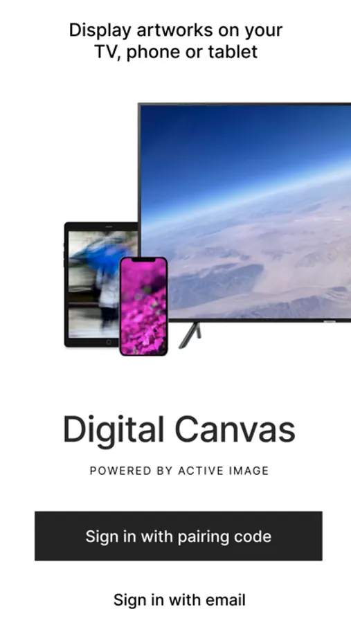 To begin displaying art on your iPad, iPhone, or Apple TV, download the app and link it to your Active Image account – you can easily create an account at activeimage.io/signup.