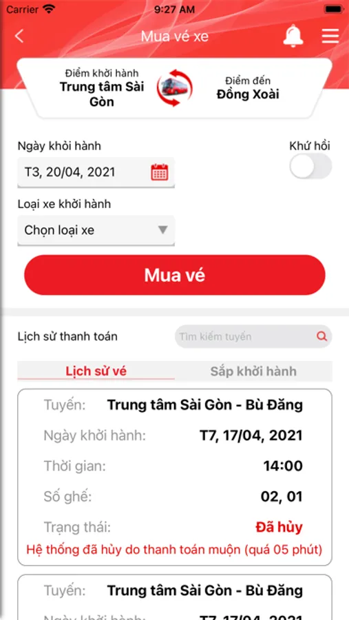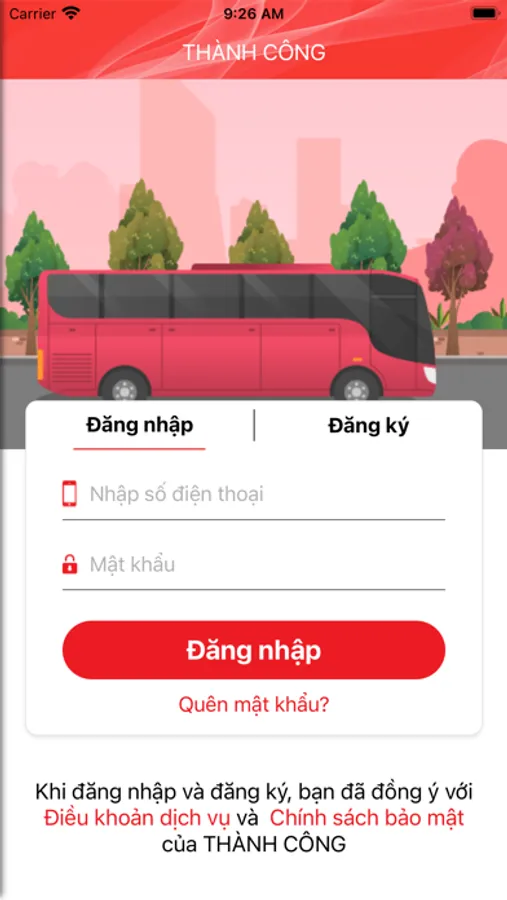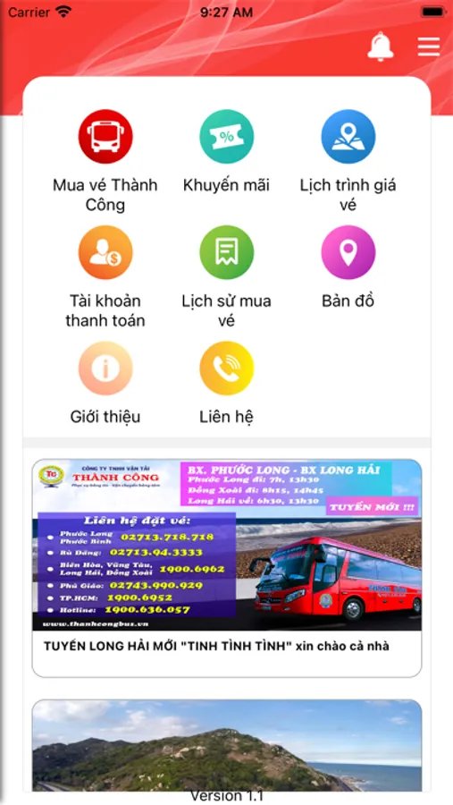 Ứng dụng đặt vé xe của Thành Công giúp cho hành khách mua vé nhanh chóng, không phải ra phòng vé mà vẫn có thể mua vé thông qua ứng dụng Thành Công