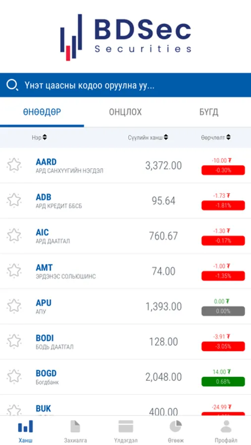 БиДиСек ҮЦК ХК-ийн Цахим брокер үйлчилгээний мобайл аппликэйшн дэх үндсэн үйлдлүүд: