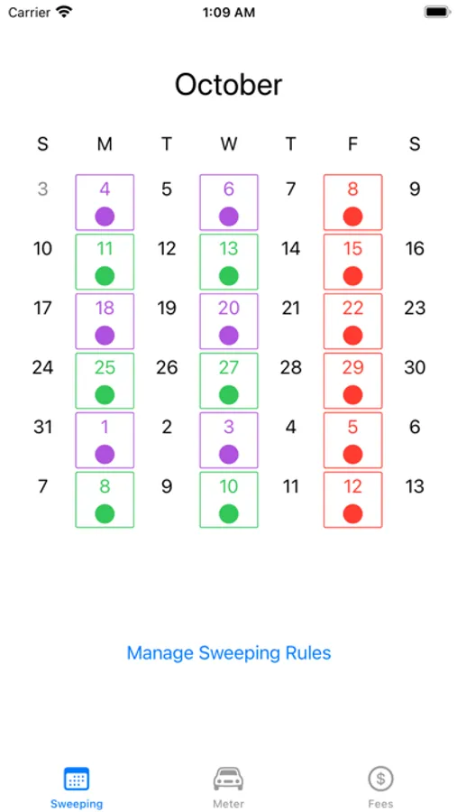Can't figure out when the street sweeper is coming? The app contains a calendar view to show you when street sweeping is scheduled. It also notifies you the day before.