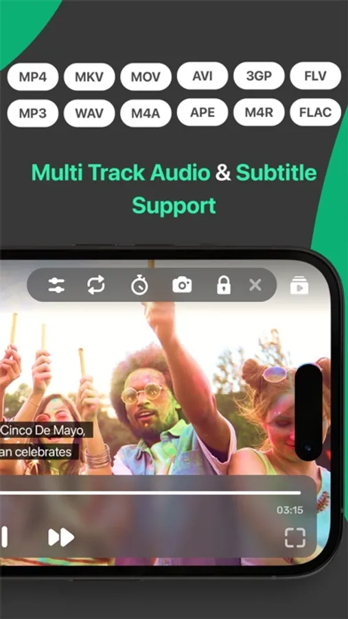 Video Player is support all video format 4k, HD, MKV, AVI, MOV, MP4, 3GP, MPEG and all music & audio file formats.