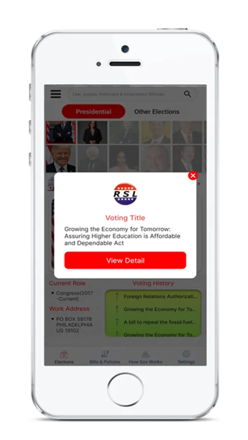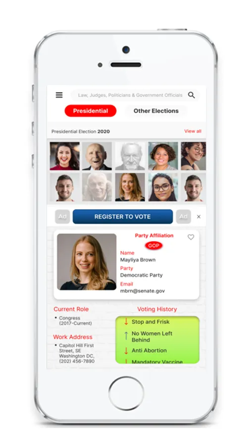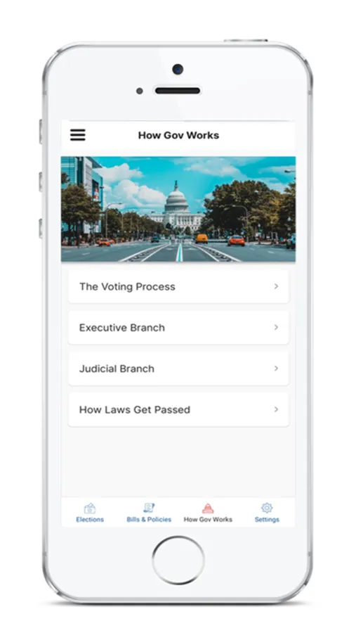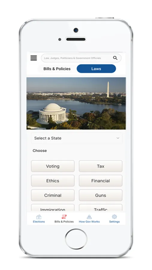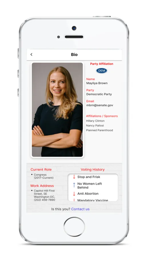 The information contained on the app is for general information purposes only. All information on election candidates, member's of government office, Bills, Policies, and Laws data found on this app is sourced directly from the Library of Congress and ProPublica.gov.