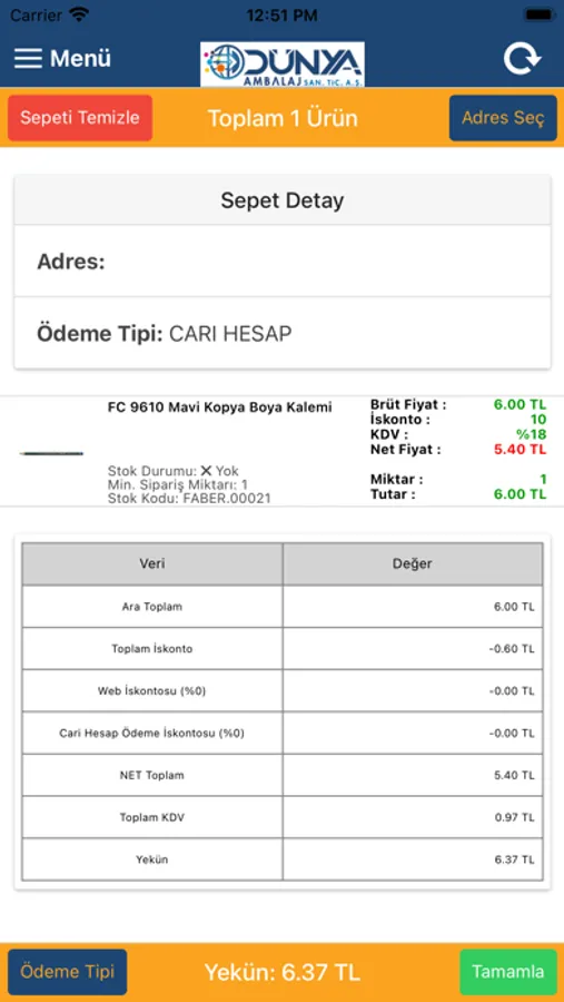 Dünya Ambalaj B2B Sisteminin Mobil Uygulaması.