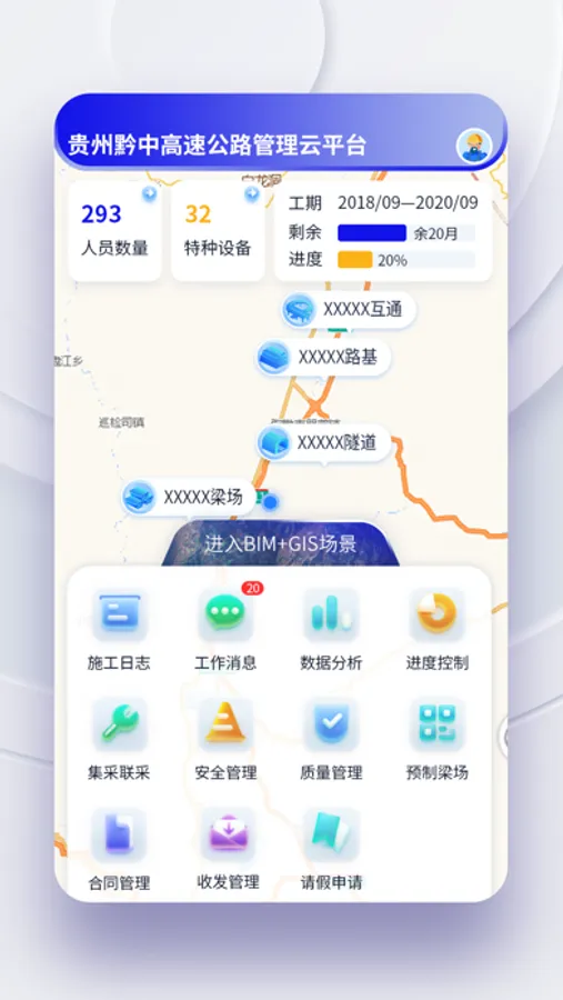 《贵州黔中高速》是四川隧唐科技股份有限公司收集各项目管理经验,实地了解分析总结项目管理共性,提炼的一款通用的企业级工程项目管理软件。旨在成为行业标杆,引领工程项目管理,解决工程管理难题,切实提高各层人员工作效率与质量。其中包括首页、BIM+GIS、人员管理、设备管理、日常任务、工作消息、数据分析、进度控制、甲控材料、安全管理、质量管理主要功能为用户提高工作效率,提高施工质量,降低安全事故的频次,为用户提供科学、规范的企业工程管理服务。