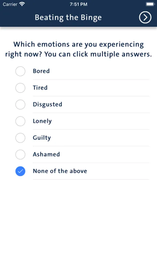 ‘Disclaimer: Participation in the ‘Beating the Binge’ study is in no way at all considered to be a form of treatment. If your binge eating episodes are causing you significant distress and/or impairment in your daily functioning, we advise you to seek a doctor’s advice.