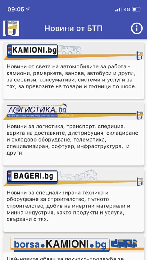 Актуални новини от областта на транспорта, логистиката и транспортните средства - камиони, ремаркета, автобуси, ванови и други, - публикувани от БТП - Българска Транспортна Преса на сайтовете kamioni.bg, logistika.bg, bageri.bg, както и най-новите обяви на borsa.kamioni.bg за автомобили за работа втора употреба.