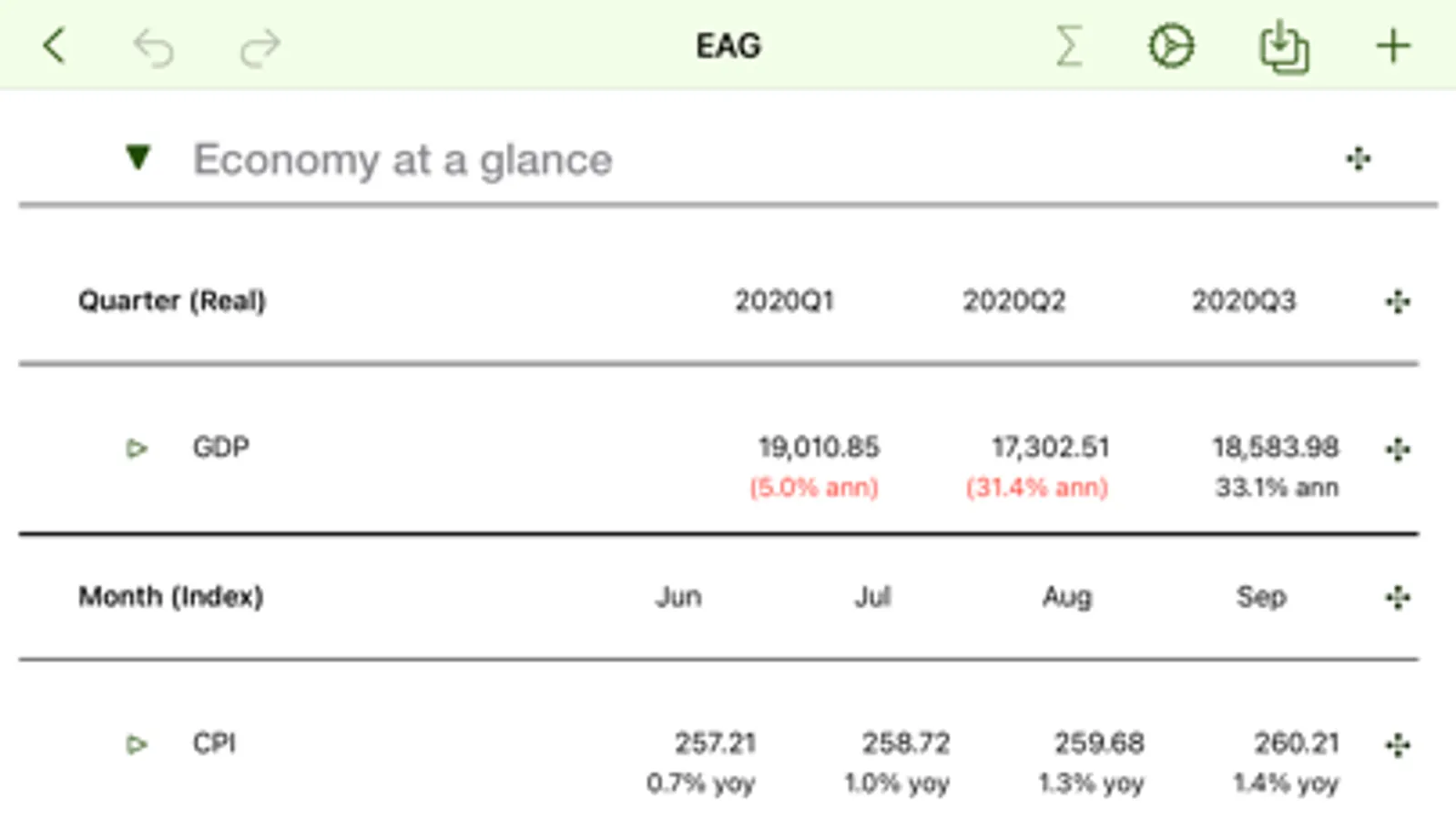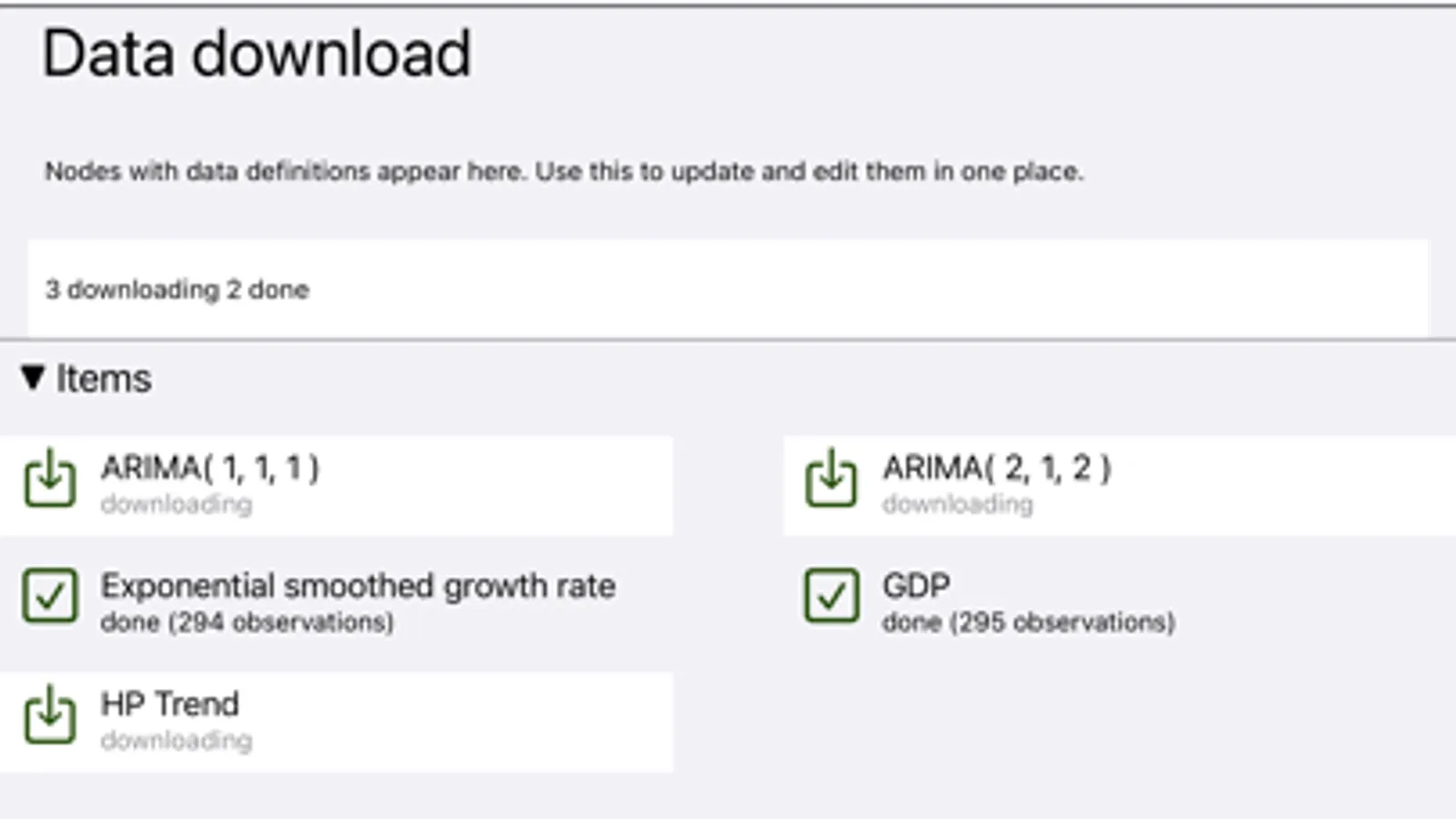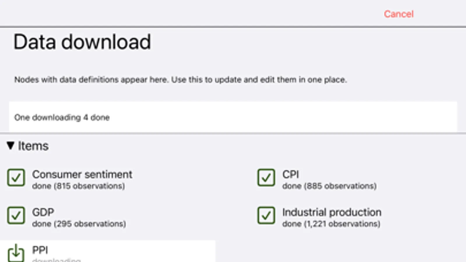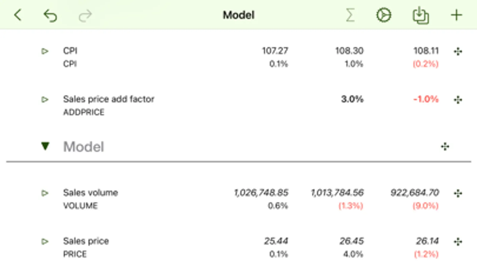 Download data directly from FRED or STATSSA into your model (no affiliation with either) or select from a number of predefined economic indicators.