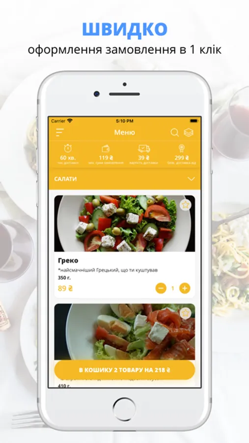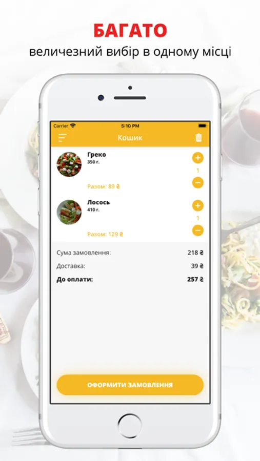 У нас ви знайдете страву на будь-який смак! Наші салати, піци та стейки не залишать байдужими, ми обіцяємо! А яка тут паста! Смачнішої у місті не знайдете! Доповніть її келихом вина, і насолоджуйтеся атмосферою затишку та комфорту. Вас приємно здивують великі порції та низькі ціни.