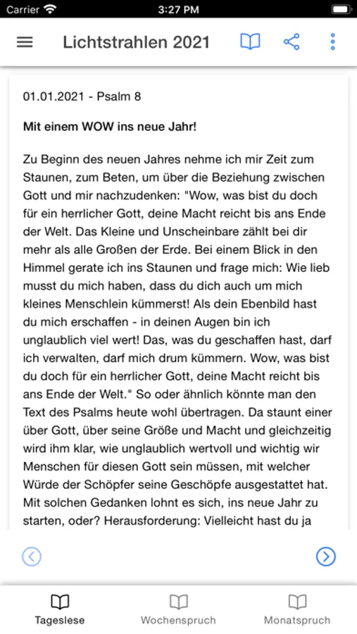 Für das Lesen der Lichtstrahlen 2021 ist keine Internetverbindung nötig. Nur wenn der vollständige Bibeltext benötigt wird, muss eine Internetverbindung hergestellt werden.