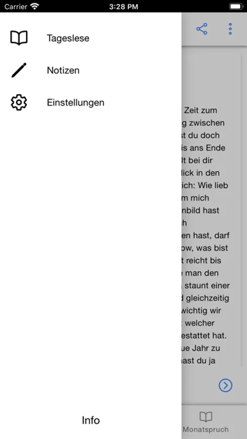 Jeden Tag gibt es einen erklärenden und zum Nachdenken anregenden Text zur täglichen Bibellese, der einen Impuls für den Alltag geben will.