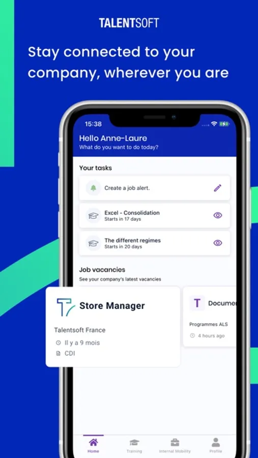 Talentsoft allows you to stay connected to your company wherever you are and access your HR processes at any time, through an intuitive interface and features designed to simplify access to your HR tasks and information shared by your employer.