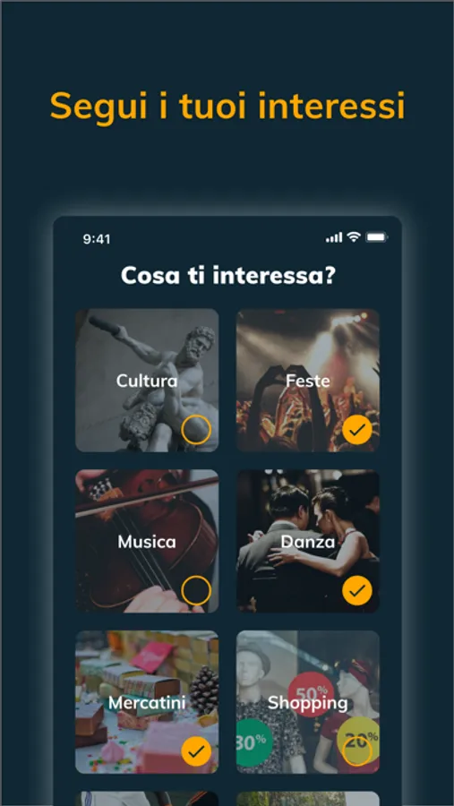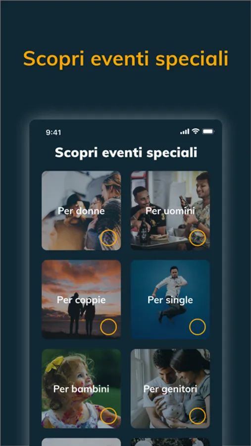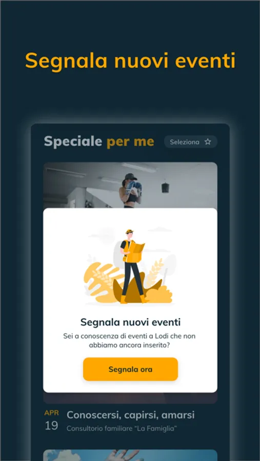 Imposta le tue categorie preferite e filtra gli eventi tra gratuiti o a pagamento. Contatta facilmente l'organizzatore della manifestazione di tuo interesse e invita i tuoi amici.