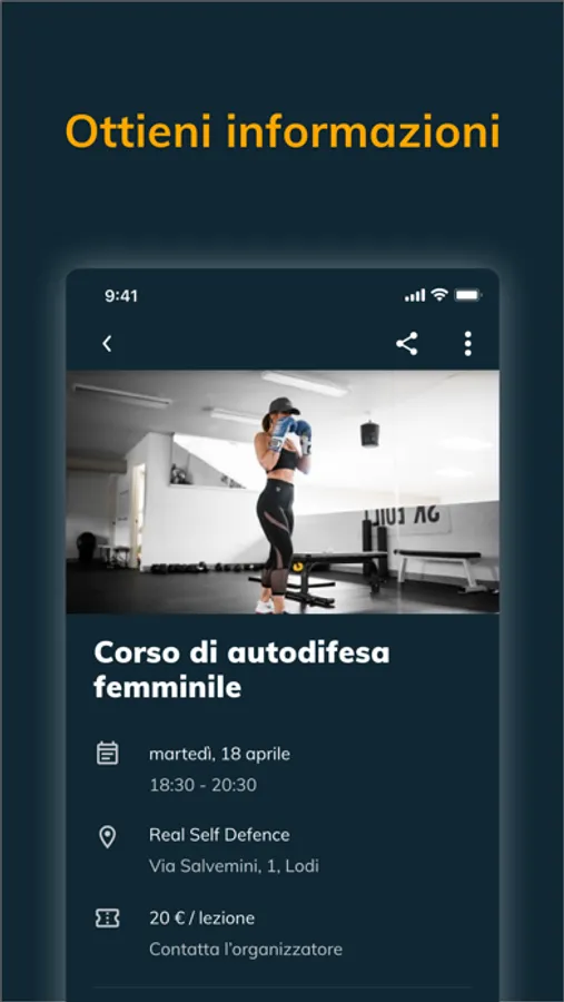 - Chiamare l’organizzatore dell’evento per avere maggiori informazioni e prenotare il tuo posto
