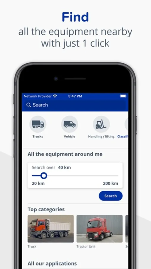 - Easily find the just equipment you are looking for, thanks to our search engine. Use key words or search filters (e.g. make, model, year, time)