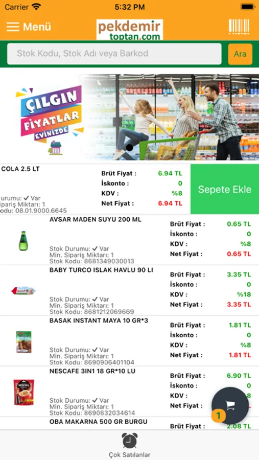 - Cihaz Kamerası ile Barkodu Taratarak Ürün Arama