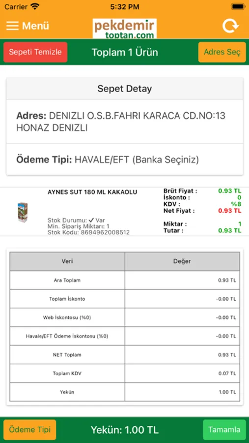 Pekdemir B2B Sisteminin Web Adresi: http://www.pekdemirtoptan.com