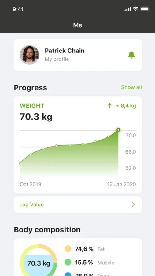 - Je gewicht en andere statistieken invoeren en je voortgang bijhouden